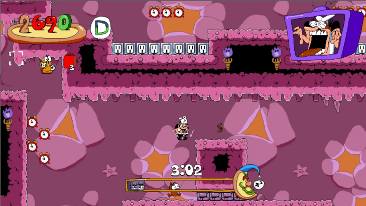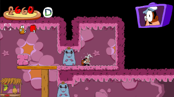 游戏中的披萨塔在受到攻击时会有搞笑的动画效果,增强游戏的娱乐性。