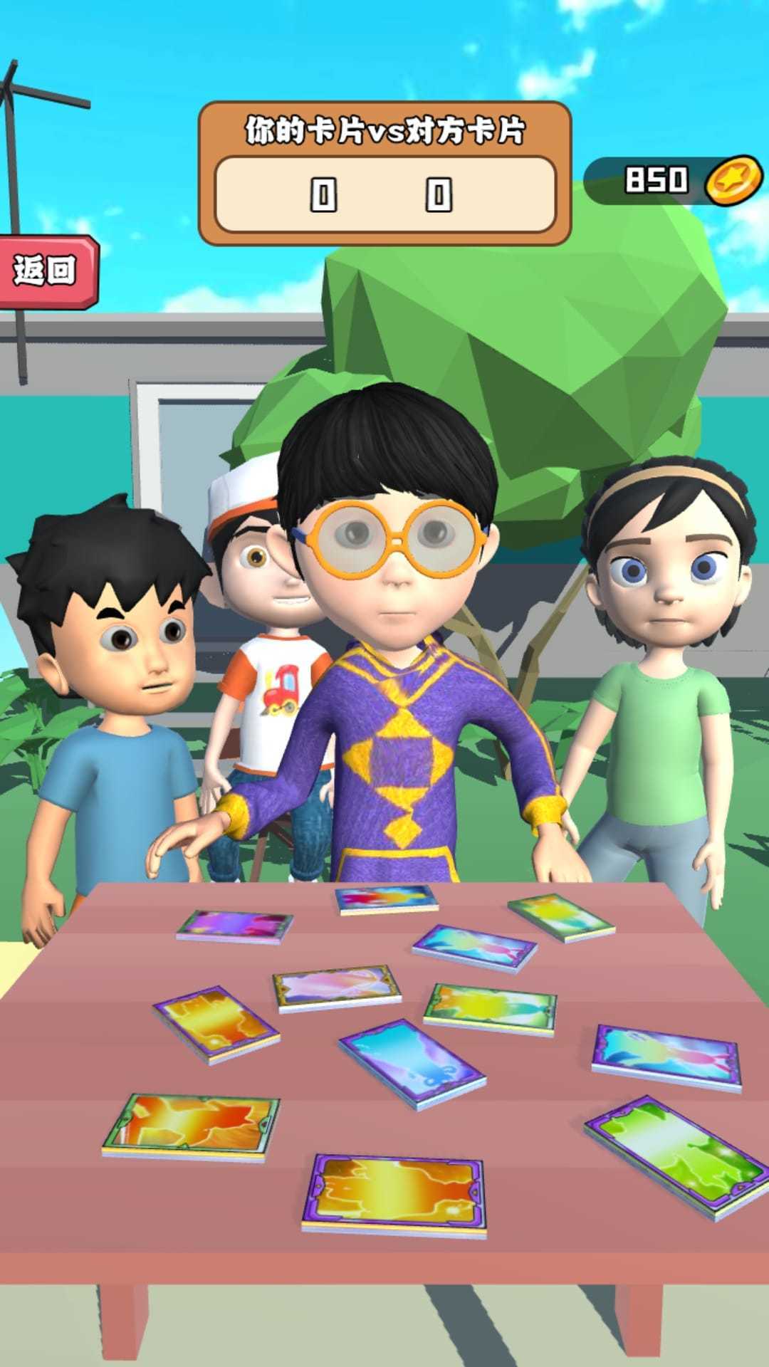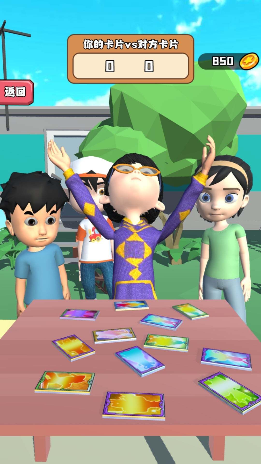 这是一款3D休闲益智游戏,游戏中你需要点击屏幕控制拍卡力度,通过将桌面上的卡片拍翻来获得该卡片,而在对局中谁拍翻的卡片数量比较多即为获胜者,对局胜利后玩家即可获得卡片和一些游戏货币,玩家可以通过与对手对决来获得各种卡片,货币还可以进行抽卡,让我们一起来体验一下吧!