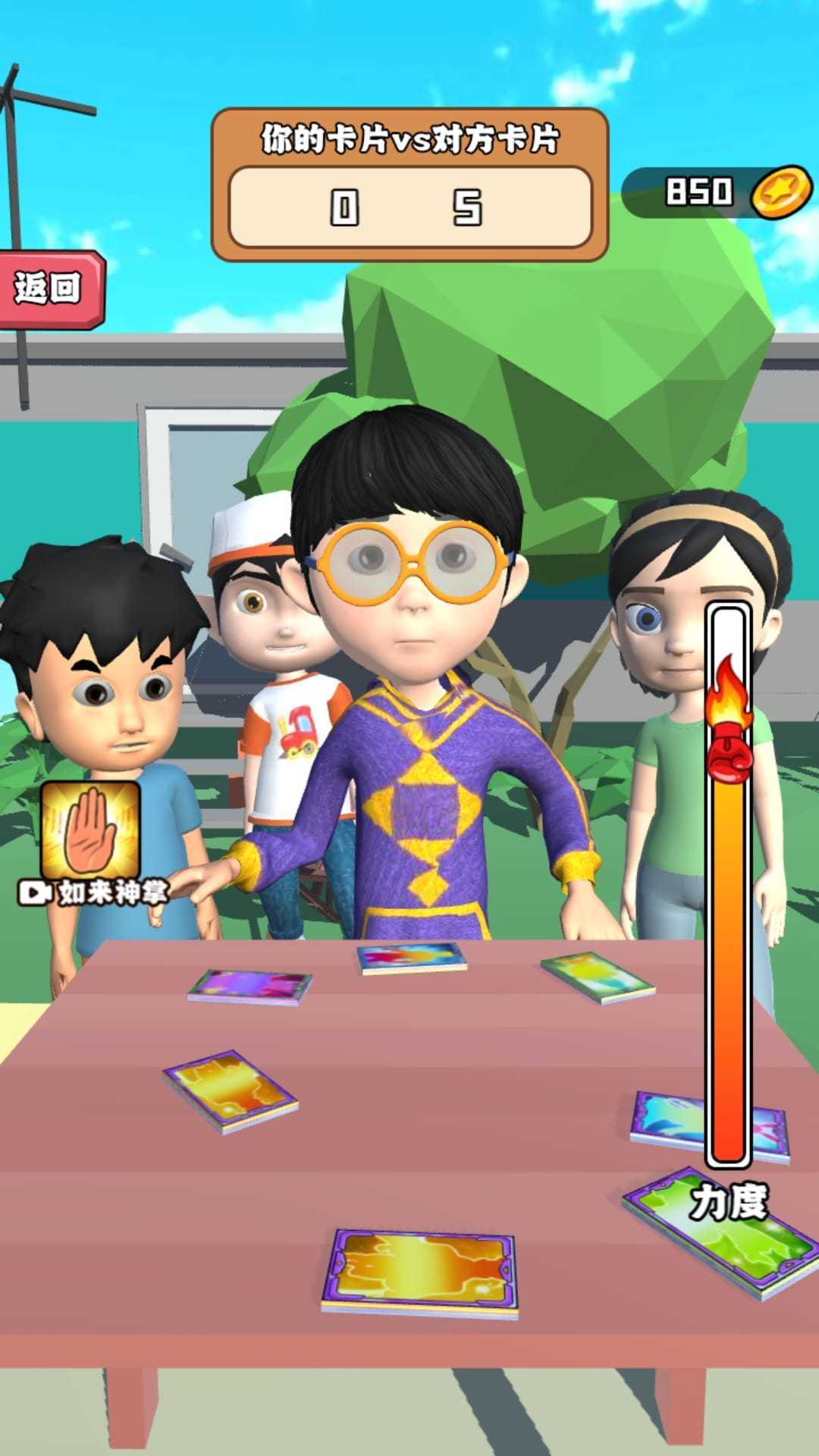玩家只需通过点击屏幕,控制拍卡的力度,以巧妙地将桌面上的卡片拍翻即可。游戏规则简单明了,但也考验玩家的反应速度和手眼协调能力,让人不禁沉迷其中。通过拍翻卡片,玩家将有机会赢得这些卡片,拍翻的卡片数量决定了对局的胜负,谁收集的卡片多,谁便是最终的胜者。