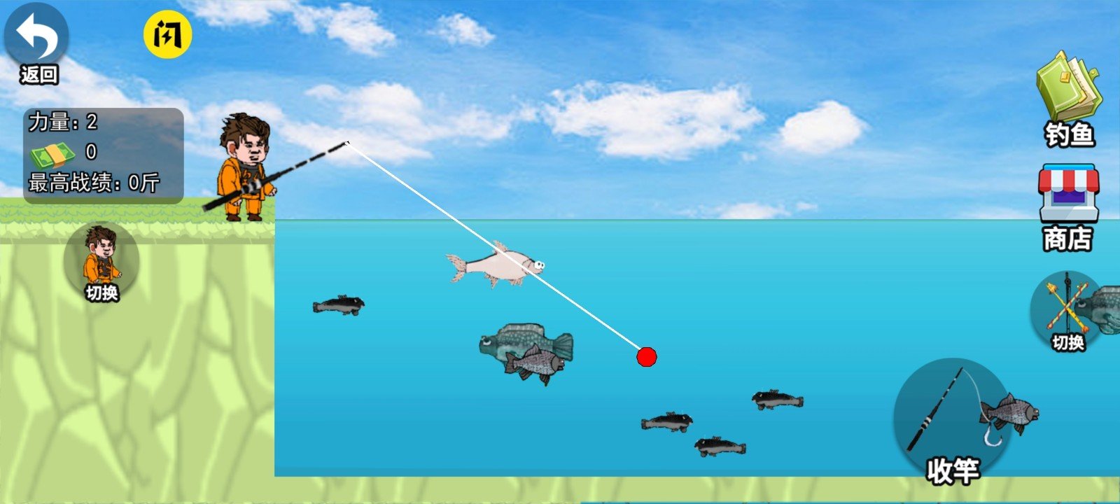 游戏中钓鱼考验玩家的耐心。湖里的鱼越强,鱼就越重。玩家必须升级他们的钓鱼竿才能赚钱。