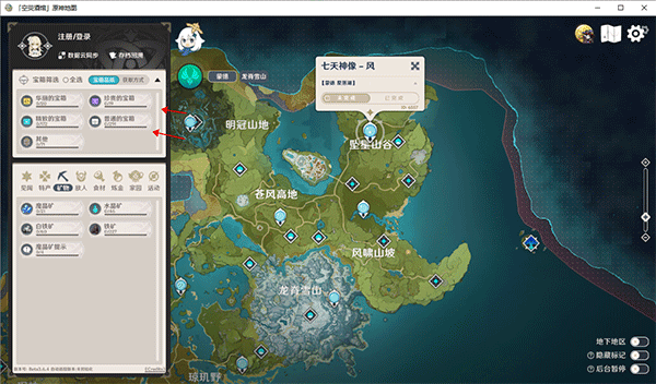 在游戏中,各种宝箱资源、岩神瞳、风神瞳等神瞳源都可以轻松查看标点符号。