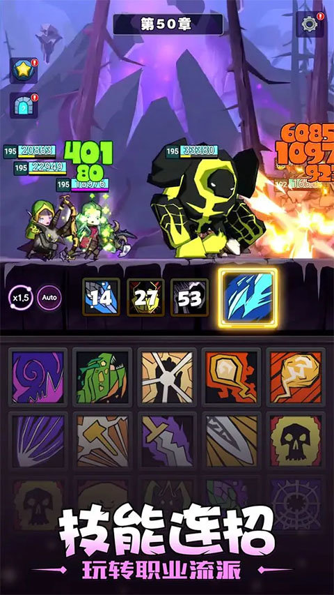 在这里你将灵活的选择阵容的搭配,自由战斗冒险!