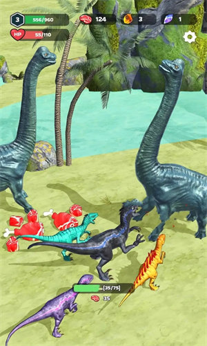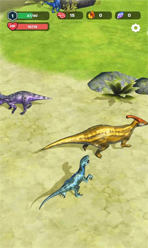 在游戏里还可以通过使用孵化蛋来招募其他恐龙组队,这样就能一起去攻击敌人来提升等级;