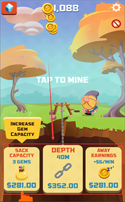 抓取的宝石和水晶可以兑换成金币,收集金币的可以提升钩爪的容量大小,锁链的长度等等;