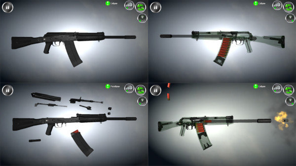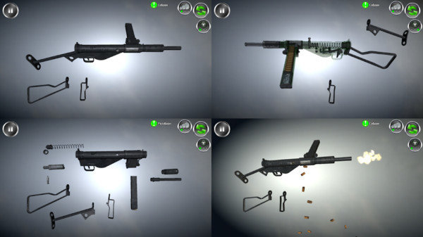 该游戏是一款枪支模拟游戏,可让您组装和拆卸(也称为“场地剥离”)来自不同时代的几种枪支。枪支完全可以操作,您可以了解每种枪支如何以不同的模式射击:自动,连发(如果枪支具有此功能)和单发。您可以通过停用喷枪的某些表面特征来显示喷枪的工作原理,并/或放慢时间以更好地了解喷枪,从而研究喷枪的工作原理。您也可以尝试在朋友中获得最高分。