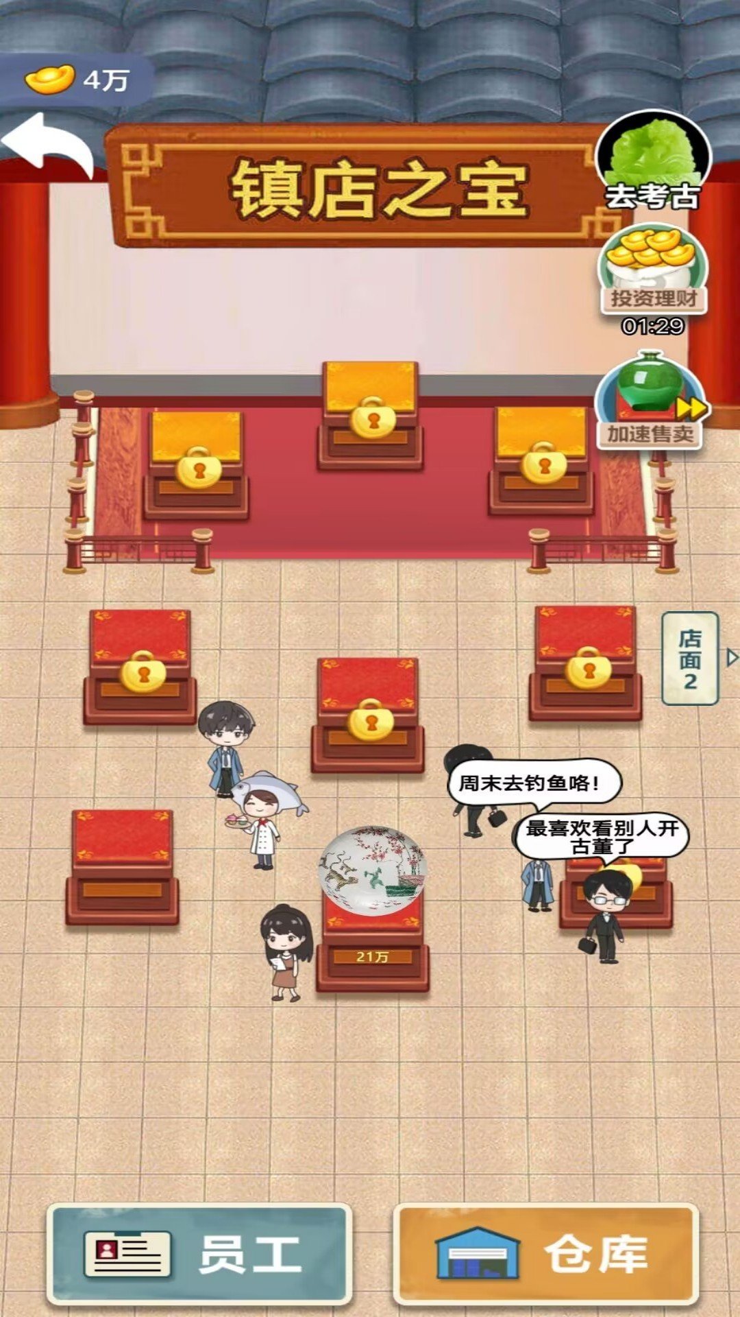 你需要在本站进行下载安装重生之鉴宝大师,游戏里玩家们需要点击屏幕调取各种古董,游戏里的每一个古董都有不同的价格;