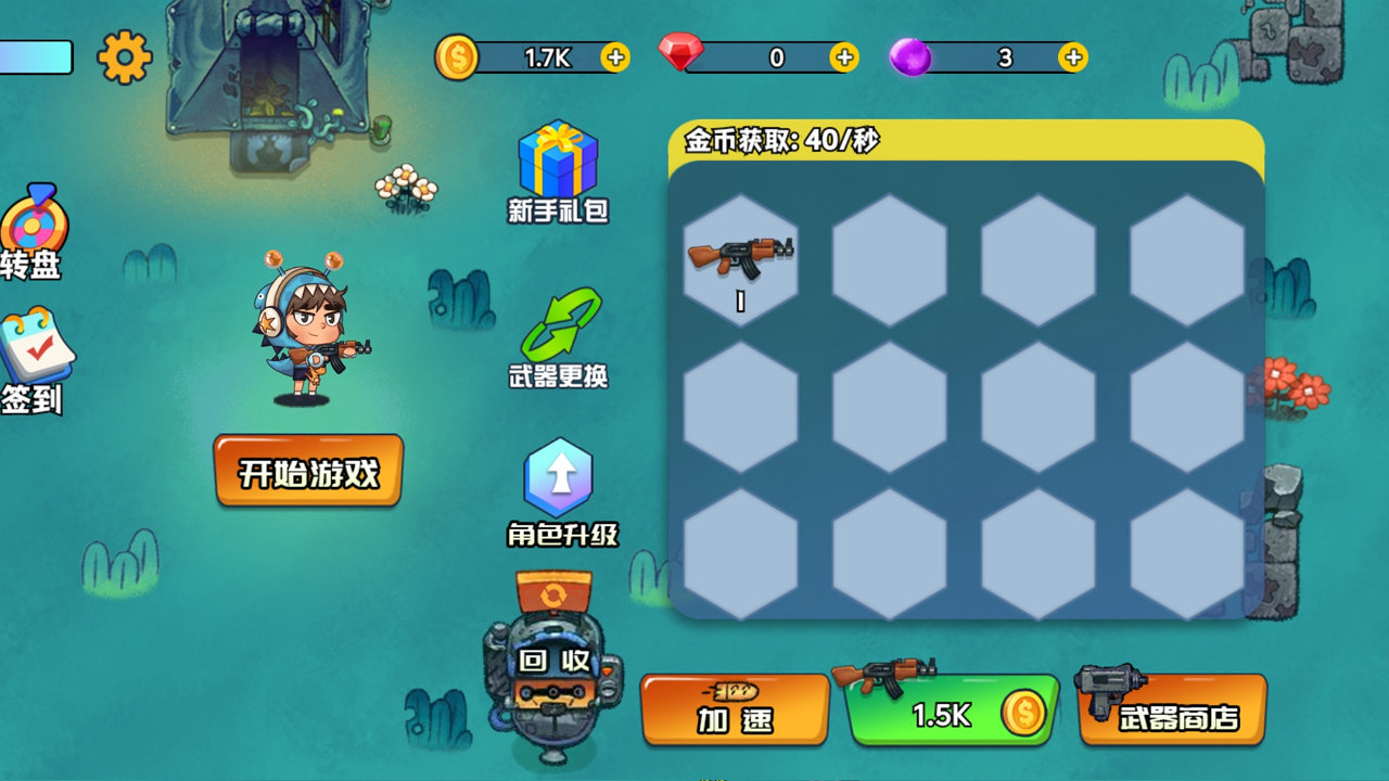 “游戏难度不是很大,操作简单明了,很快就能上手,关卡也挺多的,你要用金币给武器升级。”