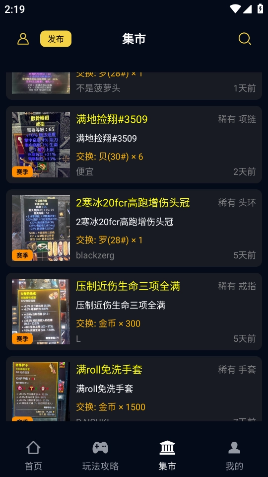 3、而在集市页面支持玩家自由交易相关道具