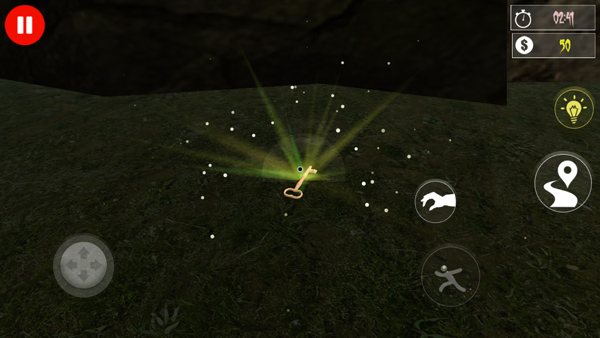 5、稍等片刻等待加载完成,进入游戏后画面如下。该游戏采用横版操作模式,屏幕左侧用于控制移动,同时左侧还负责控制拾取、跳跃以及方向等操作。