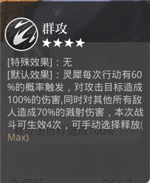 (1)群攻:群伤,一次性伤害,概率触发,一局最多触发4次。