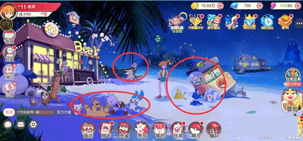 玩家可以在天空中、森林里、大海中等各个地方寻找口袋妖怪;每个地方都有独特的环境和口袋妖怪种类,玩家需要不断探索和挑战,才能找到更多的口袋妖怪;