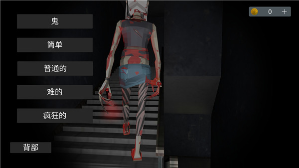 单人模式:首先,选择单人模式并选择难度,有五个难度阶层,分别是鬼、简单、普通、难、疯狂;初始状态时,玩家拥有手电筒(可以关闭),在左上角有用来聊天的设置以及背包,用于游戏中收集线索和道具;然后移动人物,可以找到枪等其他道具,点击即可获得;注意,需要避开3个危险敌人,前往不同楼层和房间寻找线索,以逃出去。