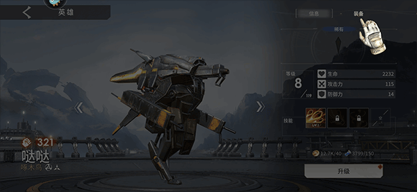 5、在具体英雄界面中找到并点击“升级”按键;