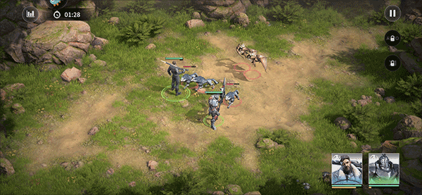 首先,便是游戏的攻击方式,该游戏的主要玩法便是提前搭配好五个英雄,然后让他们一一的派遣到游戏的战场上面。接着他们便会自动攻击出现的领主以及怪物,但他们的能量水晶满了之后,你就可以点击一下头像,并可以释放出大招,如此一来可快速攻击对手。之后继续看准时机再释放不同角色的大招,例如当所有队友的血量降低之后,马上点击一下奶妈的头像,就可以恢复所有队友的血量。