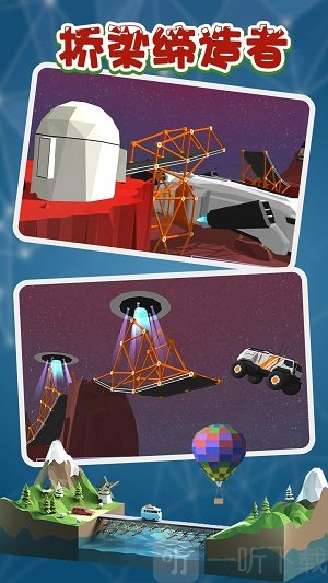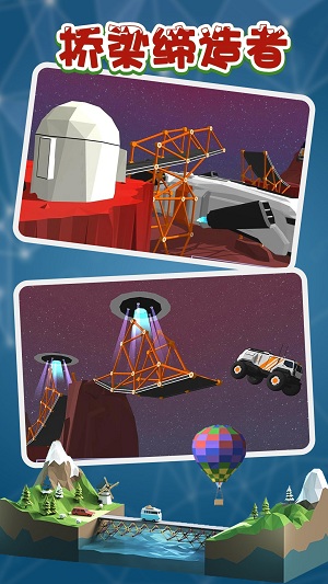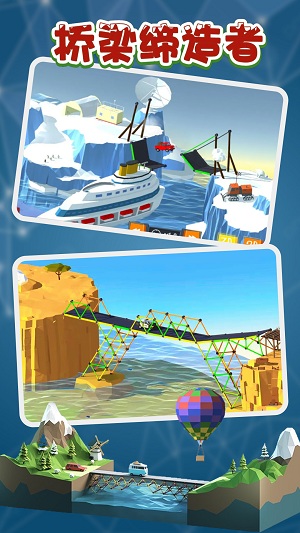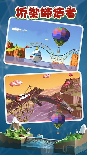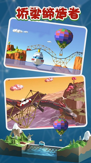 《桥梁缔造者》是一款模拟桥梁建造的休闲游戏。它的游戏场景建模极为贴近现实,同时采用卡通画风。游戏中设有不同的场景与任务挑战,对玩家的空间立体感以及物理、数学等知识储备是个不小的考验,玩家在游玩过程中还能了解到一些桥梁建筑的相关知识。