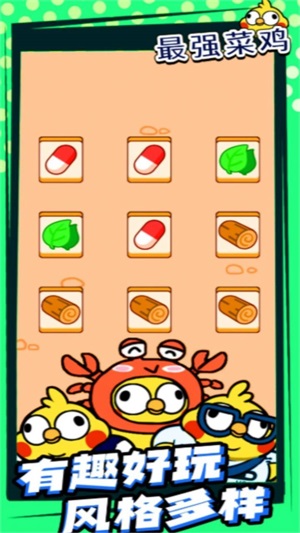 《最强菜鸡》这款游戏的画面风格极具吸引力,其精心打造了各式各样的图片。玩家在此能看到更多别具一格的消除内容,体验极为经典的消除玩法,这种玩法极易勾起大家儿时诸多美好的回忆。在游戏里重新开启消除模式,尽情疯狂闯关,完成更多的关卡任务。