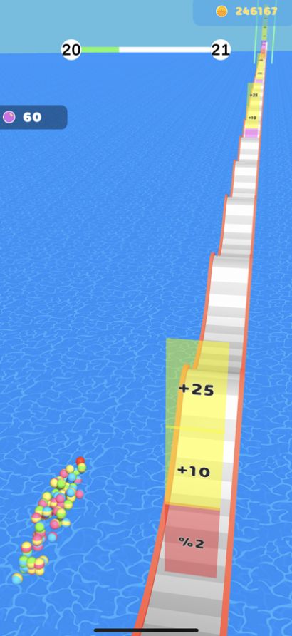 1、不断的控制小球在不同的平台上进行跳跃,积累更多的游戏经验,快速的完成各种挑战,