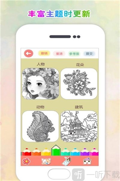 涂色花园是一款趣味十足的涂色游戏。玩家在游戏中,既能按自己心仪的方式挑选喜爱的画作上色,无需担忧颜料浪费或涂错颜色,因为即便涂错也能删除重画;还能把自己钟爱的各类图片上传,重新进行上色,着实是一款不错的游戏。