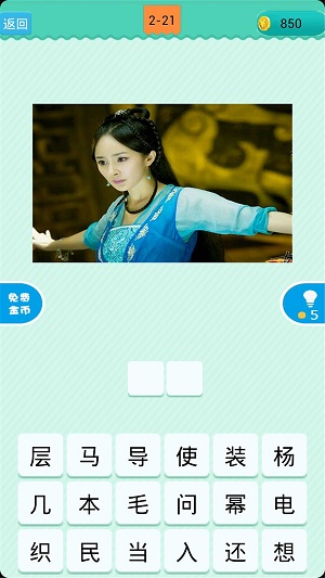 2.根据应用程序提供的图片选择正确的明星名称,以便通过关卡。