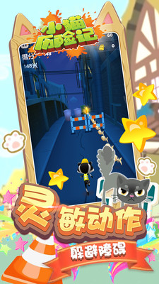 1. 可爱的猫咪拥有萌趣造型,玩家能够自主操控猫咪向左或向右移动以及进行跳跃动作,以此避免危险情况的发生。