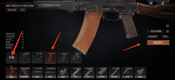 4、此时,槽位上的配件已清空,接下来我们就能换上新配件,最后点击右侧的“完成设计”即可。