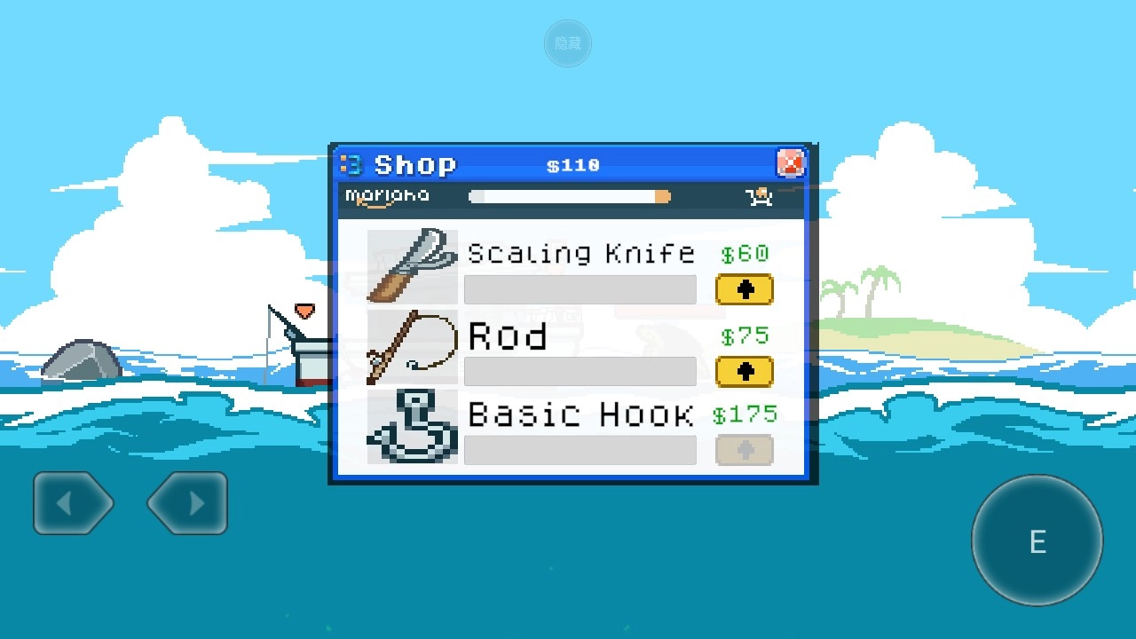 6、点击屏幕右上角的$按钮进入商店,在这里能够使用获得的金币对钓鱼等工具进行升级。海上餐厅正版评测
