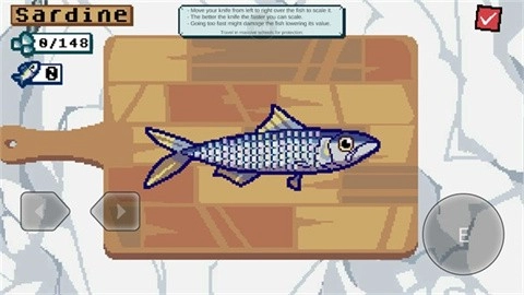 4、通过点击右上角的按钮,进入商店来购买并升级您的刀、鱼线以及鱼钩。