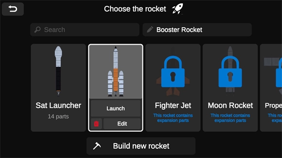 3、点击之后,既能够选择现有的火箭执行发射操作,也能够点击“build new rocket”来创建一枚全新的火箭。