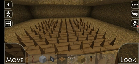 7、这便是做好后的陷阱,在家门口设置一个,然后连接到家里。白天的时候丢些肉,引诱狼进来,等月圆之夜狼变成狼人后,按下按钮,刺钉就会冒出来,这样刷钻石简直轻松得很。