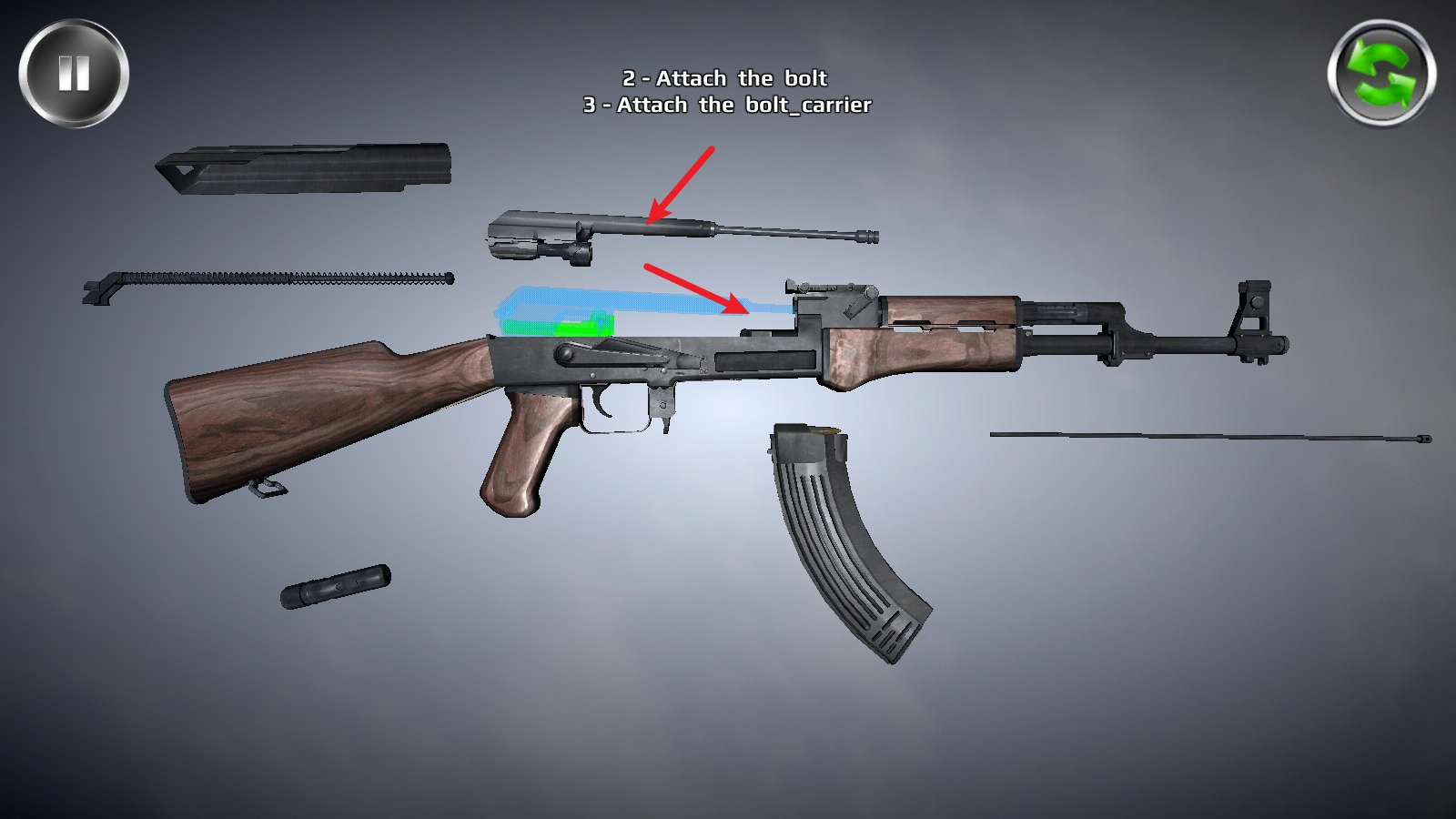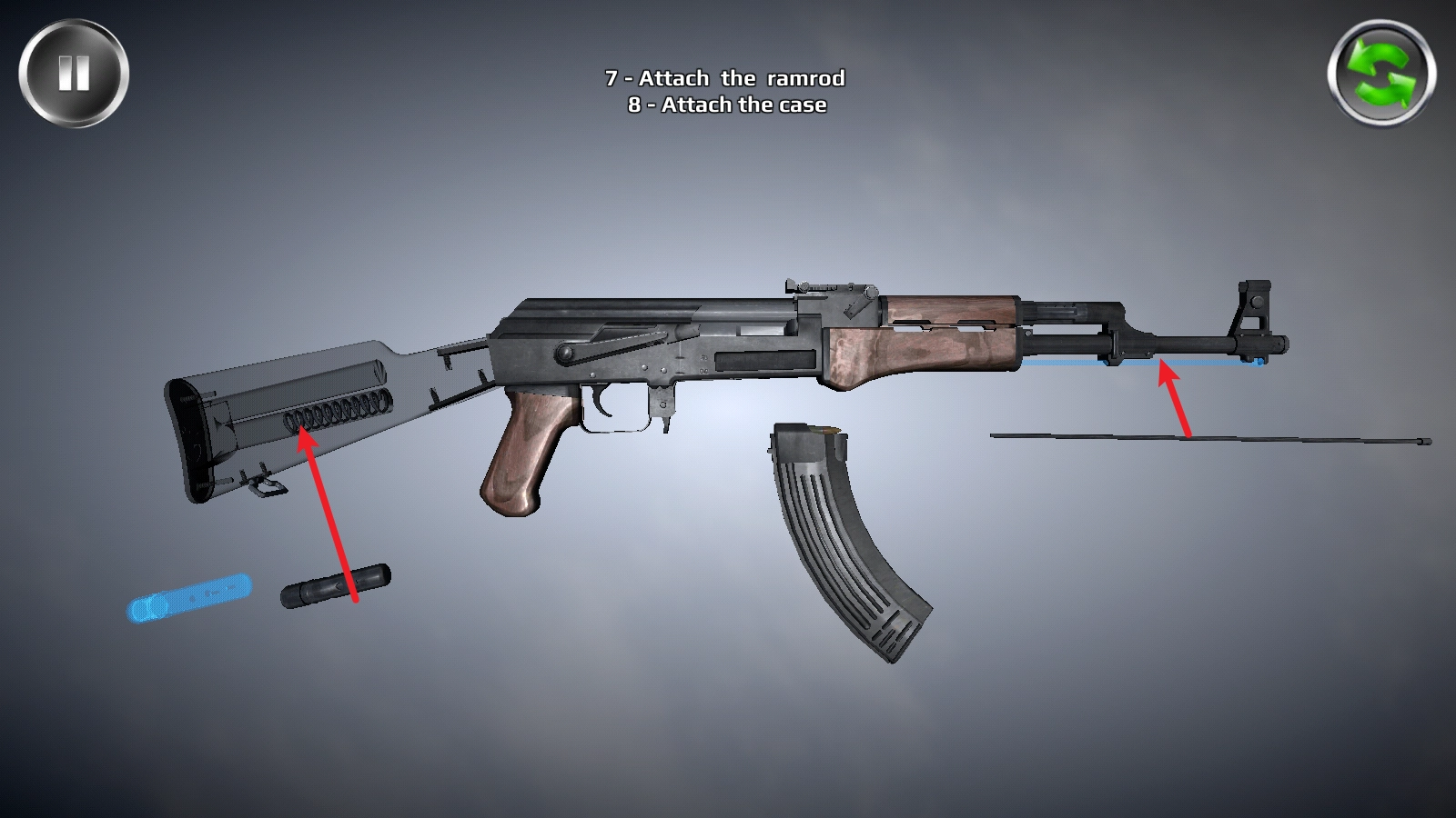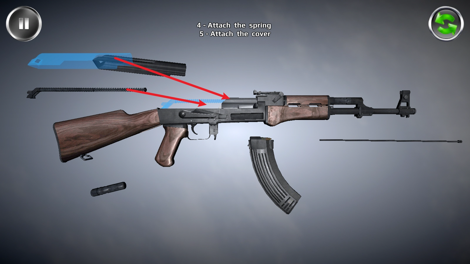 5、可以按步骤查看正确的枪械拆解组装方式;