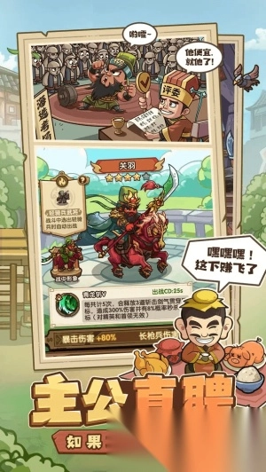 《我是大主公》是一款别具一格的三国题材游戏,融合休闲塔防与挂机养成玩法。在游戏中,玩家化身主公,招募一众三国知名人物,对其悉心培养与锻炼。而后凭借自身卓越的思维能力,运筹帷幄、排兵布阵,依据每一场对局的具体情况,组建策略满满的队伍,尽情享受快节奏且紧张刺激的对战乐趣。