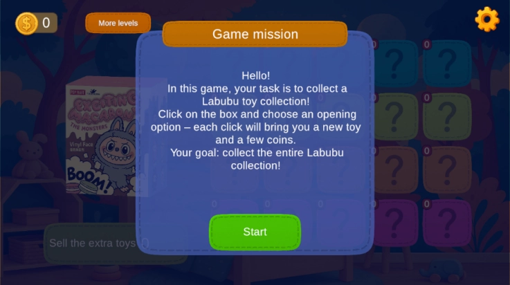 这款游戏的核心目标,是把全系列的原创Labubu玩具收集齐全。这就表明,您得持续开箱,直至将所有普通款以及稀有款都收入囊中。