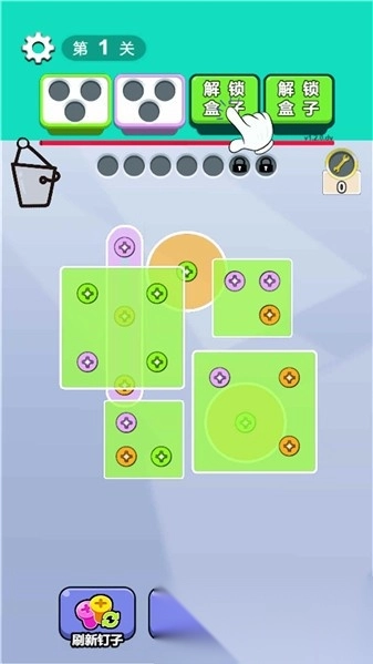 2. 核心玩法为拆卸并集齐三个颜色相同的螺丝以实现消除,当成功拆解所有螺丝,即宣告完成。