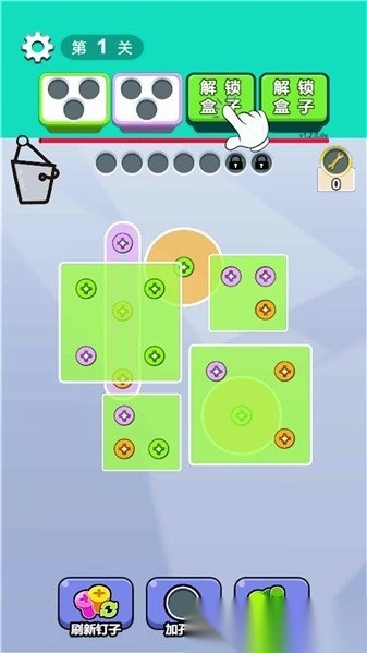 2. 当遭遇困难时,可选择使用诸如刷新钉子、增加孔位之类的道具,使闯关过程更为顺畅。