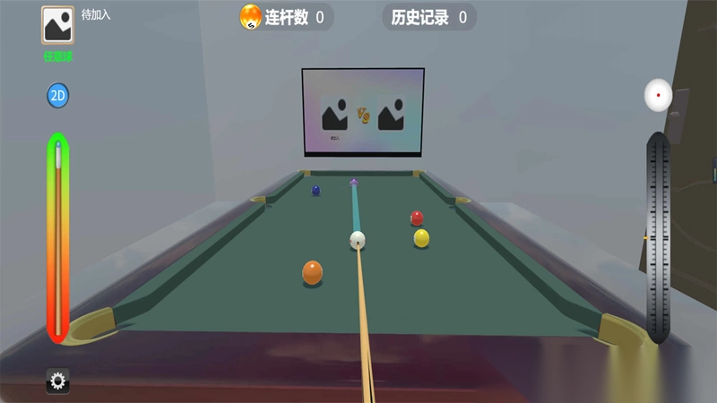 2、玩家借助触屏操作控制击球,能够在屏幕上拖动以调整击球点,同时依靠辅助线锁定目标球与袋口的连线。