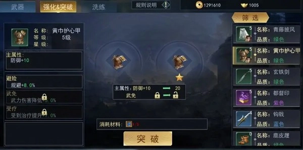装备能够借助消耗【昆吾石】来提高装备主属性的属性数值,每完成一次突破,装备就会增加1星,并且解锁一个全新的词条。
