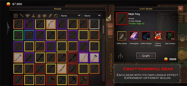 打造武器、盔甲与神器以增强角色属性,每件装备均具备独特能力。你可前往铁匠铺浏览所有可获取的装备。