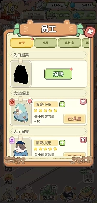 当规模扩大到一定程度后,就需要持续招募更多员工,而升星也能起到提升效率的作用。