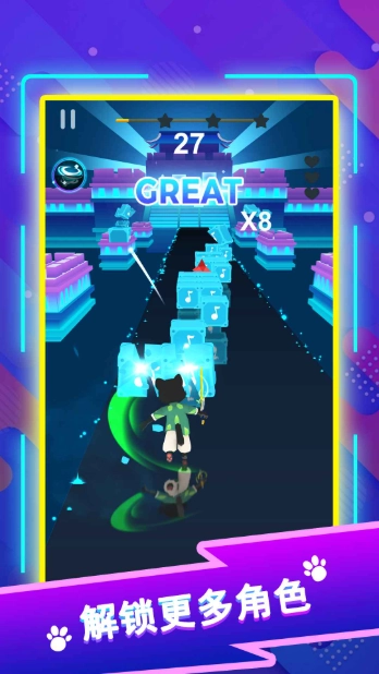跟着音乐的节拍玩跑酷,朝着终点一路冲刺,在享受音乐的同时,还能获得超解压的体验。