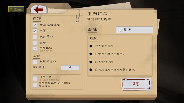 选择游戏难度及观看规则;