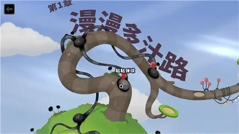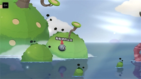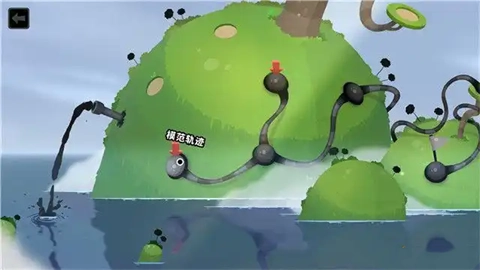 在这个挑战环节里,你得把怪物嘴前那些粘乎乎的球体搭建起来,形成一条通路,延伸到远方,这样就能让墨汁顺利流进山谷里了。