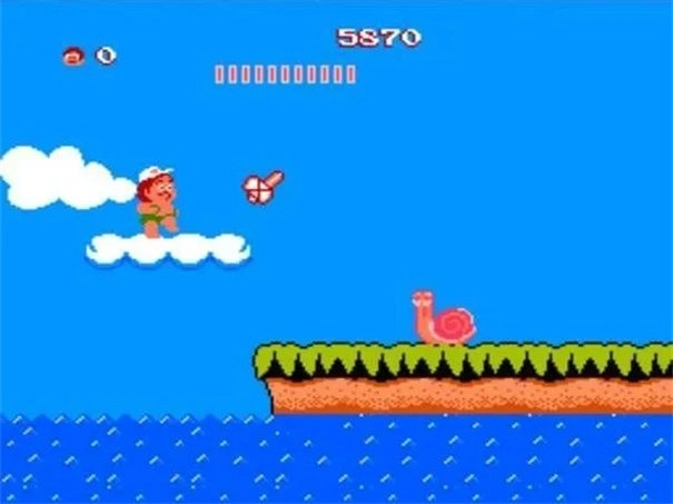 游戏里有个特殊区域能让玩家获得额外高分,那里的水果分值都比较高。进入这个区域有两种途径:一种是先从隐藏的蛋形道具里拿到钥匙,再找到前方某个特定平台——要是没钥匙,这个平台原本是会下沉的,有了钥匙就能通过它进入高分区域;另一种是观察子弹的轨迹,当子弹打到某些位置还没落地就消失时,再仔细留意会发现有一小片区域根本发射不出子弹,在那里稍作等待,就会有云彩把角色托举到那个高分区域。这两种方式的区别在于,第二种进入方式对应的区域范围更宽,大概有三个单位左右,而通过隐藏蛋进入的区域只有一个单位宽,所以隐藏蛋的位置相对更难被玩家发现。