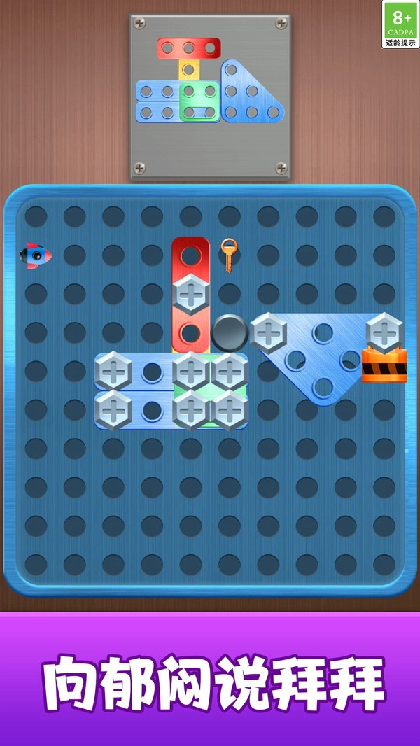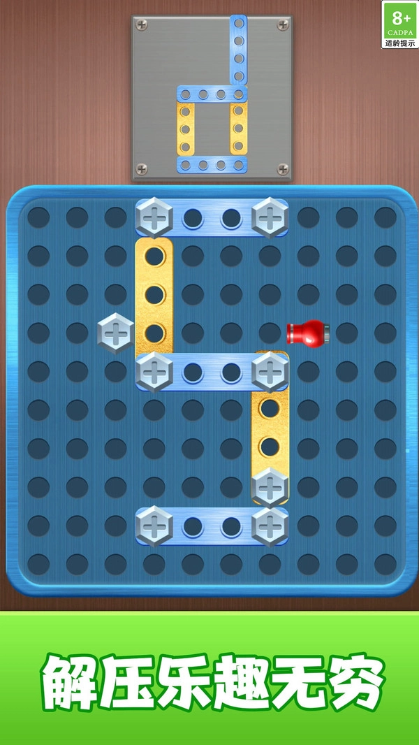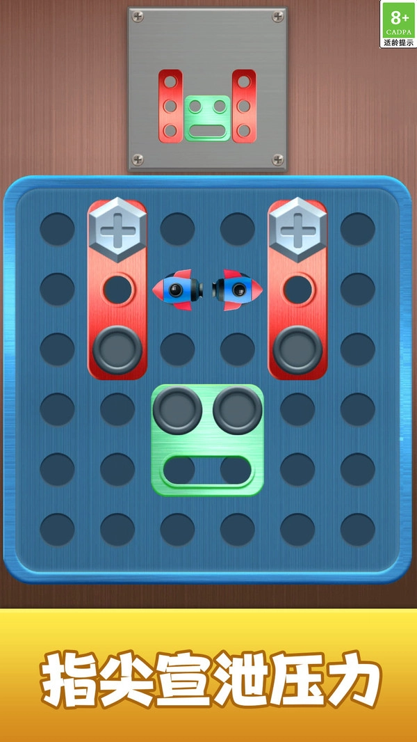 一款围绕螺丝与零件摆弄展开的休闲小游戏,借助直观的点触与摆放交互,让玩家在轻松氛围中收获惬意的游玩感受。