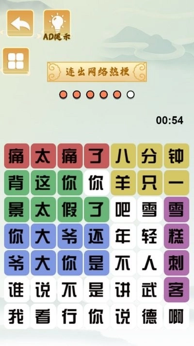 1、基础模式要求根据图片提示与文字片段,组合出正确的网络流行语或特定词汇。