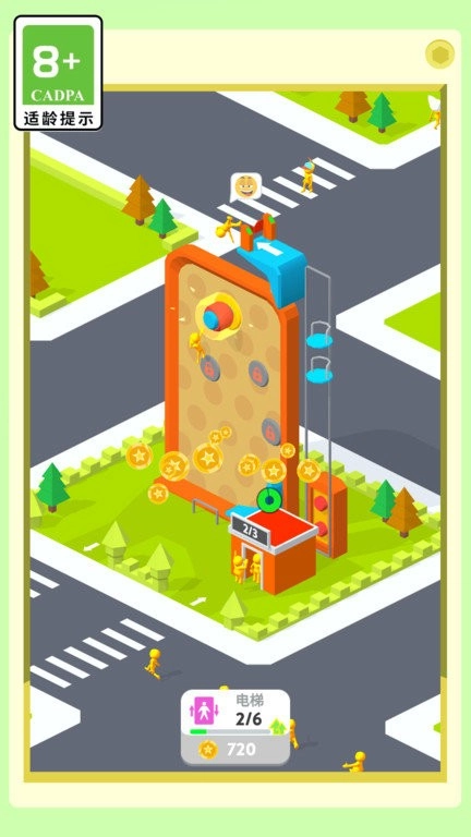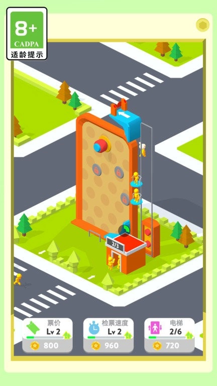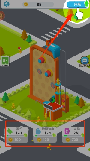 3、屏幕底部配备临时加速等道具,收集后会即刻生效。点击右上角菜单,能够用游戏币提升电梯的载客量或运行效率。