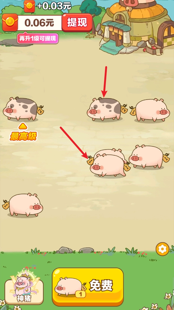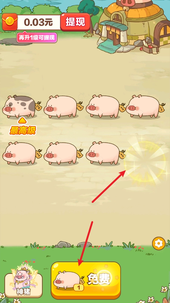 1、游戏中我们点击下方的按钮就可以根据当前最高等级随机生成小猪猪。