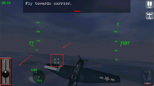 2、根据关卡提示,完成飞机降落要求,左侧是油门,右侧是俯仰角度。