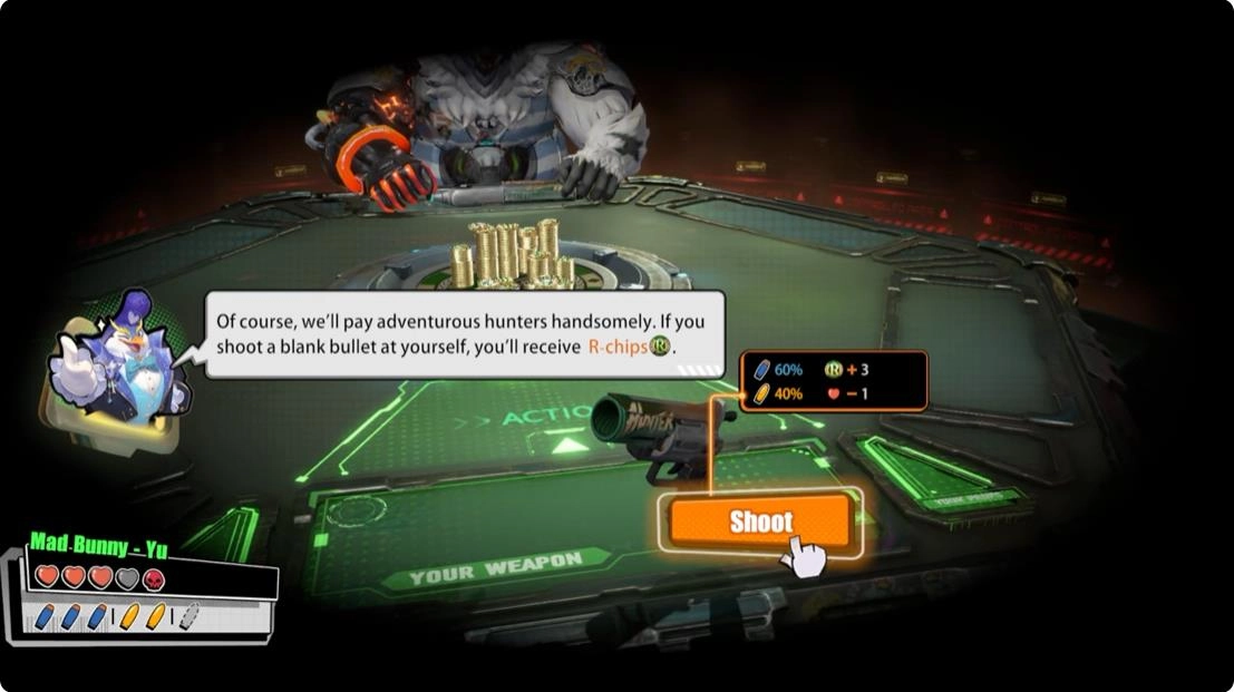 2、每一轮的装弹过程都是自动完成的,实弹和空包弹的数量是随机分配的,玩家需要依据实际情况来做出决策。