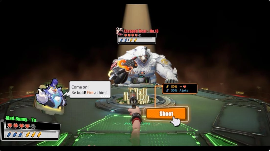 1、每一轮开启前,系统会随机给玩家分配实弹和空包弹,之后玩家们依次挑选目标展开射击。