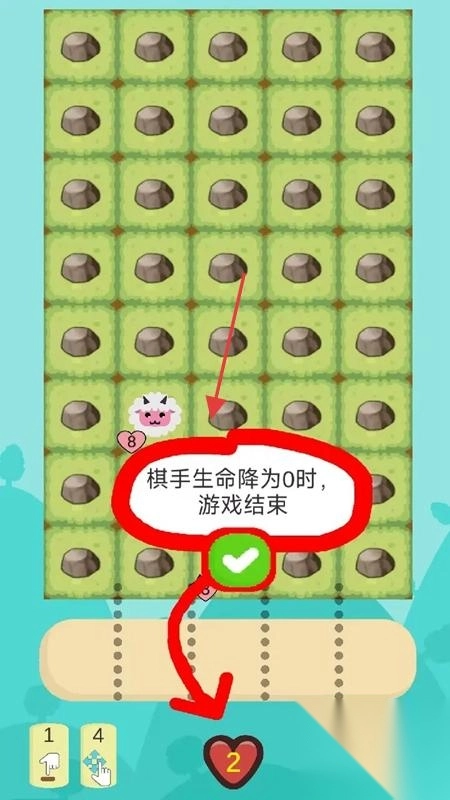 2、棋手有生命值,当生命值降为0时,游戏结束,需通过部署棋子、击败敌人,守护棋手生存。